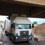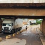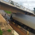 Na manhã de segunda-feira (22/11), aconteceu a mesma coisa com um ônibus interestadual que teve parte do teto arrancado na mesma ponte.