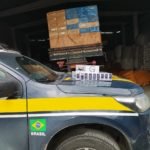 Após o comando de parada, foram solicitados os documentos de porte obrigatório e a nota fiscal da carga. O motorista disse que estava carregado com cigarros, porém não portava a documentação da mercadoria.